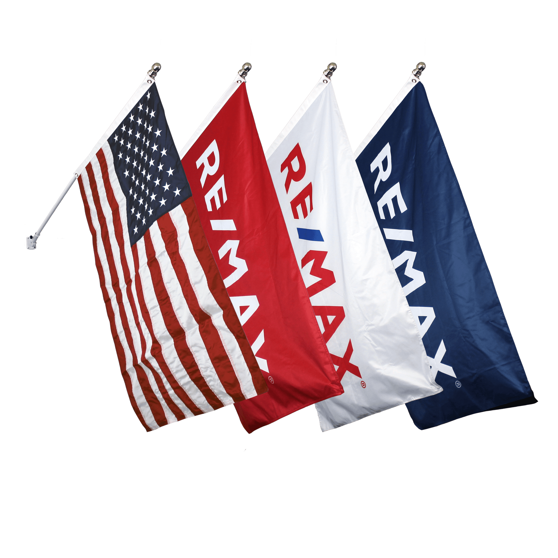 The spinning feature of this heavy-duty Porch Flagpole sets it apart. The pole spins freely on a set of ball bearings which keeps the flag unfurled and displayed properly in the wind. It features a 6’ x 1” dia. 2-piece white aluminum pole, plastic gold ball ornament, adjustable white aluminum mounting bracket, and EZ-Mount rings. Flags are sold separately.