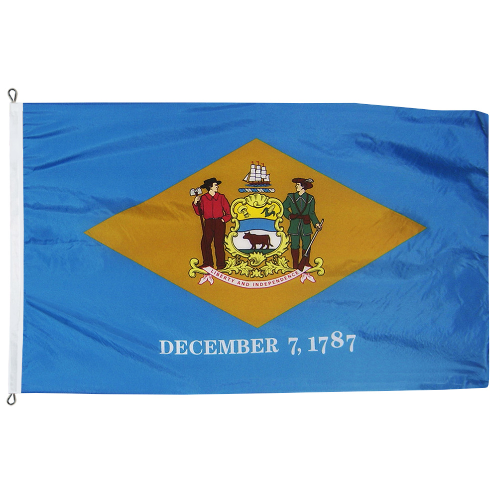 The aniline dye process duplicates complex emblems with exacting accuracy in brilliant, fast colors. Authentic seals and designs are always in correct proportion to the flag size.