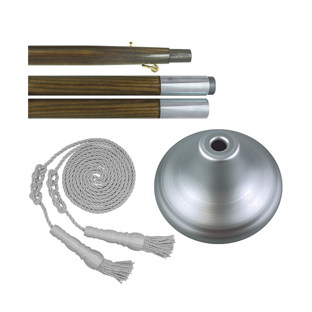 3 X 5 Parade Set Kit - 8 ft X 1 1/8 in Two Piece Oak Pole/All Silver & No Eagle