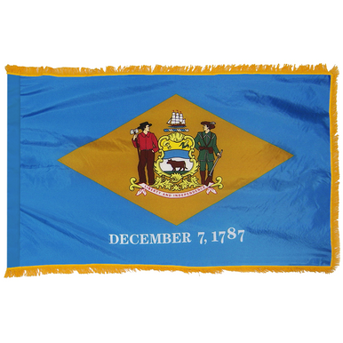 Delaware Nylon single reverse printed finished with pole hem and fringe