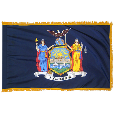 This Nylon New York Flag is single reverse and finished with fringe and pole hem for flying proudly on your flagpole.