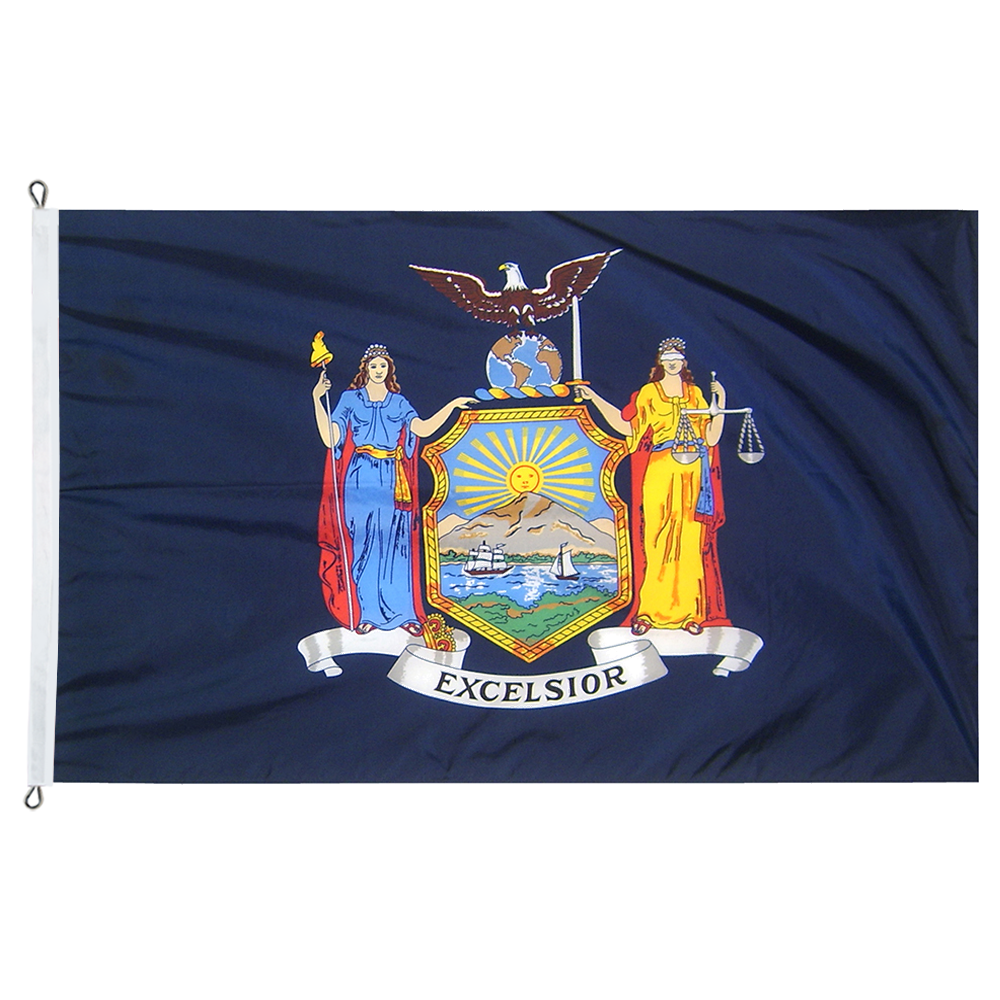 This Nylon Large New York Flag is single reverse and finished with roped header and thimble for flying proudly on your flagpole. Call Collins Flags for more information.