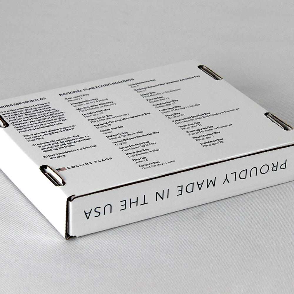 A replacement box featured in the Z3X5REKIT. This patriotic-themed box is branded with the RE/MAX wordmark logo. Flip the box over for a calendar of national flag flying and half-staff holidays and a description of how to care for the flag. Cardboard box dimensions are 10.25” x 8.25” x 1.75”. Made in the USA. They ship nicely in 10 and 20 pack master cartons but can be purchased individually.
